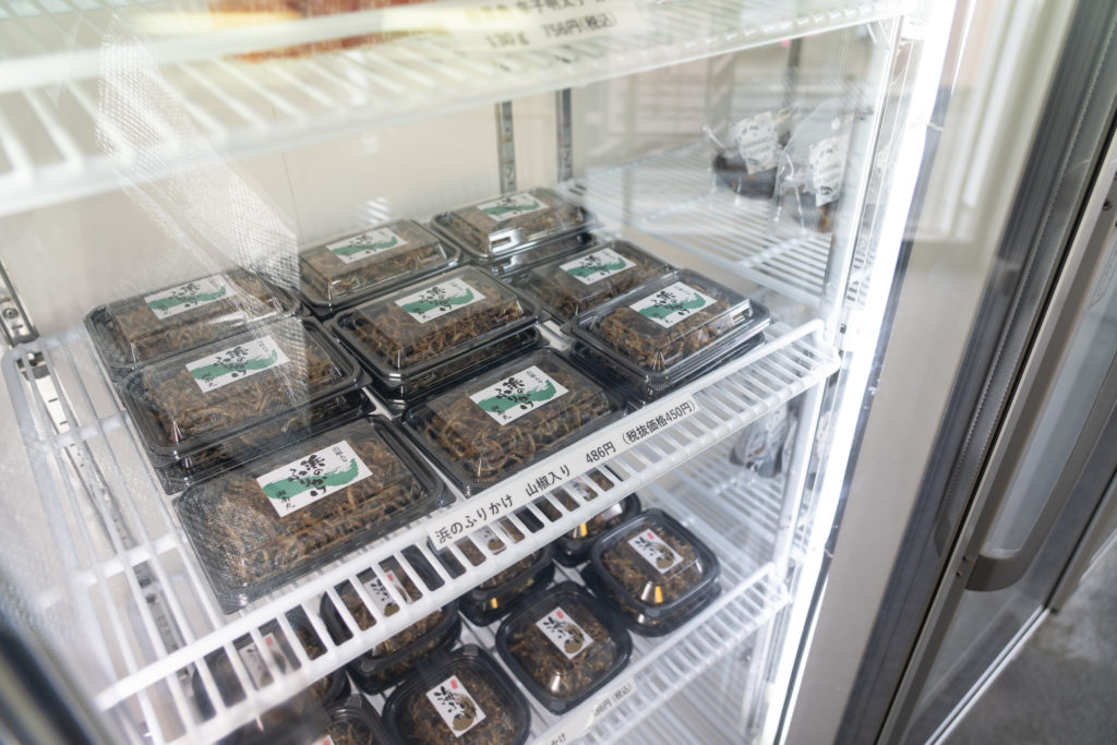 店内には釜揚げしらすをはじめ、新鮮な海産物がずらり。